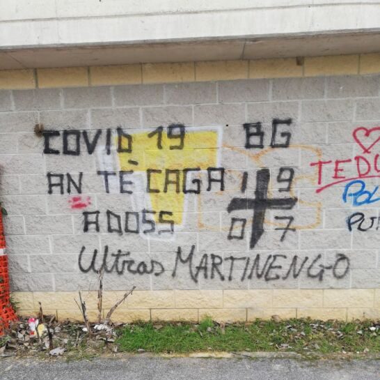La scritta è comparsa sulla facciata della classica cabina elettrica di paese. Vicino allo stadio “Bepi Casari”, dedicato al portierone che gridava “Meaaaa” ogni volta che usciva dai pali per chiamare la palla. Attigua al supermercato, per la precisione: “Covid 19 an te caga adòss”, la promessa formulata dagli Ultras Martinengo 1907 al maledetto virus che ha chiuso le porte dei santuari del pallone ai tifosi e anche tutto il calcio dilettantistico. Rappresentato, a casa dei goliardici sostenitori nerazzurri, dall’Eccellenza della Forza e Costanza. Un modo spiritoso per dire al mondo che i bergamaschi non si arrendono agli arresti domiciliari perpetui, dopo essere stati colpiti per primi da un contagio che continua a penalizzarli a suon di misure restrittive a dispetto dei numeri molto più incoraggianti e ridotti che altrove.