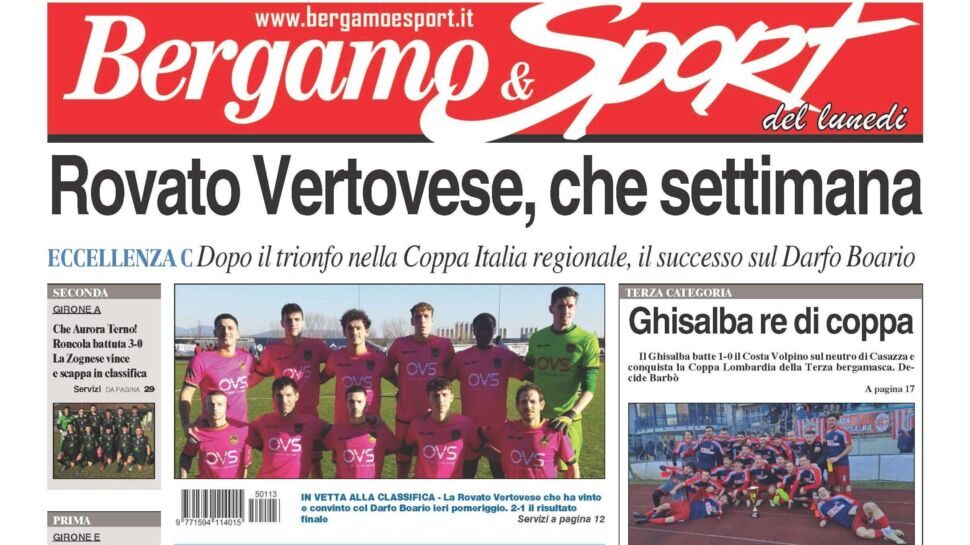 Riecco il calcio provinciale e riecco Bergamo & Sport, il settimanale più amato da chi gioca a pallone nella nostra provincia e che potete acquistare o dal vostro giornalaio di fiducia o tramite la nostra edicola digitale cliccando dalle sei di mattina su www.bergamoesport.it/abbonamenti. Tanti i temi caldi in questo week end dove sono ripartiti tutti i campionati ad eccezione di quelli di Terza. Da applausi, come sempre in questa stagione, la Rovato Vertovese, corazzata che pochi giorni fa ha vinto la Coppa Italia regionale di categoria e non sbaglia mai un colpo nel suo girone, il C di Eccellenza, dove è prima. Questa domenica la bella vittoria interna della formazione di Bolis contro il Darfo Boario. Applausi anche al Ghisalba, re della Coppa Lombardia di Terza, importante trofeo conquistato battendo nella finalissima di Casazza il Costa Volpino. Bene, anzi benissimo, altre tre compagini orobiche. Parliamo della capolista Zingonia Verdellino (Promozione C), ora a più quattro sul Pianico dopo il successo contro l’Accademia Calcio Alta Val Brembana, poi del Paladina (Prima E), campione d’inverno perfetto alla prima di ritorno (3-0 alla Nembrese), quindi dell’Aurora Terno (Seconda A) che ha strapazzato la super Roncola facendo un grosso regalo alla battistrada Zognese. Molte le partite seguite e parecchi gli approfondimenti, da leggere tutto d’un fiato quello sul Trofeo Bellina vinto dal Torre de’ Roveri sull’Albano. Che altro dire? Il solito consiglio: non importa dove, non importa come e non importa quando, ma comperate Bergamo & Sport.