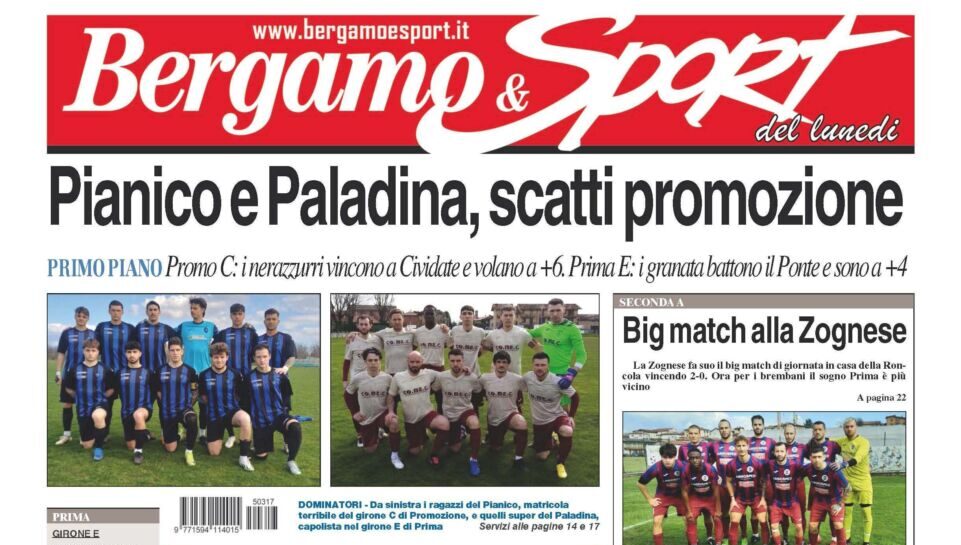 lunedì 17 Marzo 2025Bg & Sport in edicola: Pianico, Paladina, Zognese, Scanzo, Rovato Vertovese e bomber Gamba in evidenza