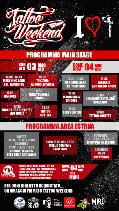 Sabato 3 alle 20.00 e domenica 4 alle 19.00, main stage: Tattoo Contest