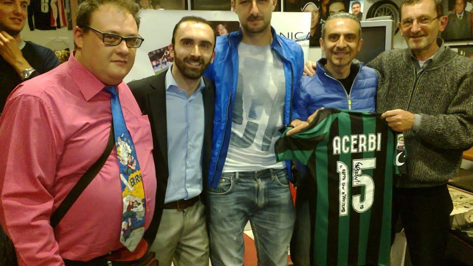 – Il sorriso di Francesco è quello di tutti i malati di pallone: “A luglio comincerò la preparazione. Il mio futuro è sul campo, non ho mai pensato nemmeno un secondo di lasciare. E se sono qui a parlarne è merito dell’affetto di chi ha lottato con me, magari incoraggiandomi con un semplice messaggino”. Nelle parole di Francesco Acerbi, le certezze di chi non si arrende dopo aver sconfitto il male (quello vero) due volte: la prima nello scorso precampionato con l’operazione d’urgenza, poi con la chemioterapia per fronteggiare il ritorno a dicembre – scoperto grazie all’antidoping di Cagliari-Sassuolo – del tumore testicolare che aveva deciso di ripresentare il conto a un ragazzone tutto calcio e salute come lui. Il numero 15 neroverde parla a cuore aperto a una platea bergamasca (presenti anche il fratello del sassuolese Federico, portiere in forza alla Giana neopromossa in Lega Pro, il bomber di Pianico Simone Magnaghi, la bandiera nerazzurra Eligio Nicolini e Marcello Torre Calabria, vincitore del “Grande Fratello” nel 2009), ospite del videomaker Beppe Rota nel suo studio di Sovere: “L’ho conosciuto anni fa e abbiamo subito stretto amicizia – precisa il cameraman-conduttore-collezionista di maglie, volto noto di TeleBoario con la sua trasmissione ‘Dillo a Beppe’ -. Ci accomuna la passione per il pallone, visto che io ho giocato fino a 17 anni come portiere nella squadra del mio paese, e anche il fatto di avere perso il papà ancora giovane. Cose che ti insegnano ad apprezzare la vita ancora di più, anche quando è costellata di ostacoli”.