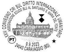 Sabato 9 settembre 2023 dalle ore 14.00 alle ore 19,00 presso il Santuario, Poste Italiane attiverà un servizio temporaneo con un annullo speciale dedicato che verrà inaugurato per timbrare le corrispondenze presentate presso la postazione richiesta della Croce Rossa Italiana – Comitato di Caravaggio e allestita per l’occasione. L’annullo, disponibile nel formato ovale, raffigura il Santuario di Caravaggio e la riproduzione dello Scudo Blu. Completano l’immagine le scritte «XXIV Convegno CRI sul Diritto Internazionale Umanitario – Assegnazione Scudo Blu al Santuario Santa Maria del Fonte – 9.9.2023 – 24043 Caravaggio (Bg)». Durante la cerimonia di assegnazione, prevista per le ore 17.00, si terrà un brevissimo momento istituzionale di bollatura ufficiale che vedrà la partecipazione delle Autorità civili e religiose. Per Poste Italiane parteciperanno il Direttore Provinciale della Filiale di Bergamo1 Rosa D’Amico, la responsabile di filatelia Macroarea Nordovest Annamaria Gallo e la responsabile filatelica di zona Giusy Montanino.