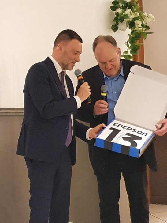 Il primo “Bravo Papà” per interposta persona. José Ederson e Berat Djimsiti, genitori per la seconda volta insieme alle consorti Myckaela e Alisa, di Matteo e Aron rispettivamente, hanno ricevuto lo storico premio dell’Atalanta Club Valgandino dalle mani del direttore generare dell’area corporate della società nerazzurra, Andrea Fabris.