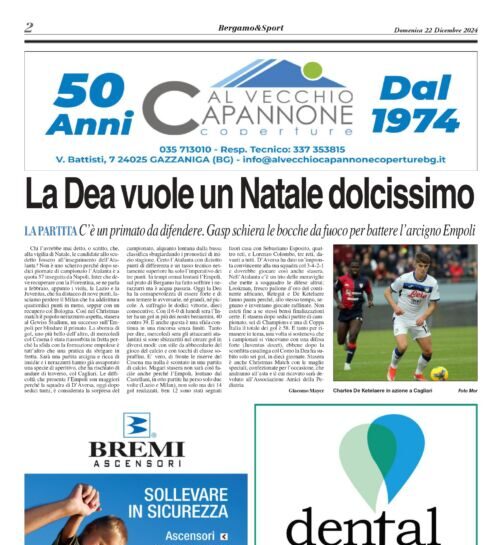 sabato 21 Dicembre 2024Atalanta-Empoli leggi qui gratis il Bergamo & Sport Stadio