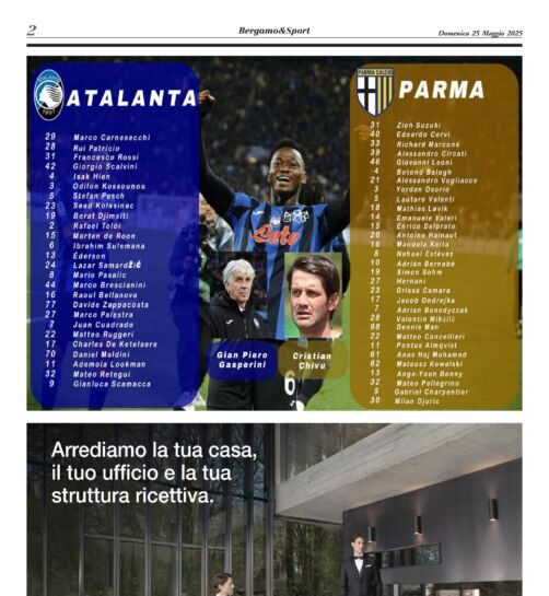 sabato 24 Maggio 2025Atalanta-Parma leggi qui il Bergamo & Sport stadio