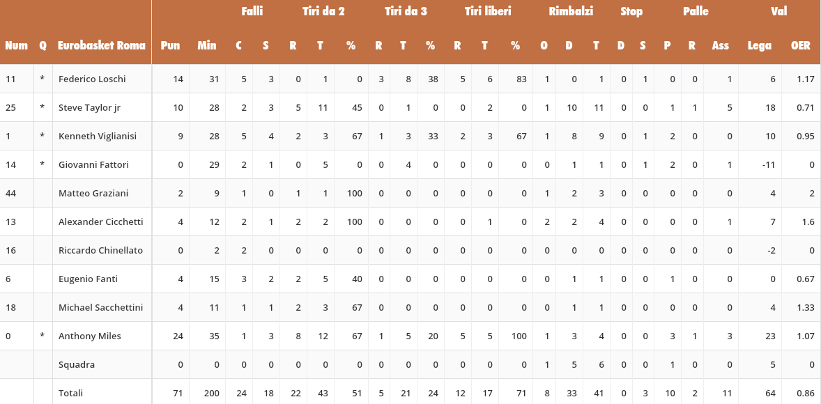 Il capitano si schioda da 0 per il nuovo vantaggio sul 56, a un tris dalla penultima sirena, ma la doppia transizione Taylor-Cicchetti la riporta sul binario e per scollinare facendosi inseguire occorre un nuovo lampo dal divano dell’inglese. La passerella finale vede sfilare in primis l’inchiodata di Costi a tiro di un erroraccio del centrone romano, benché risulti nuovamente chiaro che in cassaforte non c’è ancora alcunché. Anche se il margine rasenta il settebello con Allodi e ancora Costi (67-60, 2’30”), Sacchettini ne infila un paio tenendo in piedi l’Eurobasket finché il duo di stranieri di Calvani non si inventa arcobaleno in entrata e temporale dai sette metri, facendo salire gli orobian boys sull’ottovolante (quota 72) a tre giretti e mezzo dal gong. Prenderne tre da Viglianisi e due da Miles su palla persa (72-69 a 1’57”) ridesta lo spettro del finale con Scafati vinto con il lancio da baseball dell’ex collegiale britannico. Non ce ne sarà bisogno. Tre possessi sprecati, Bozzetto che esce per 5 falli (1’26”) e il marasma citato in premessa: tutto bene quel che finisce bene.