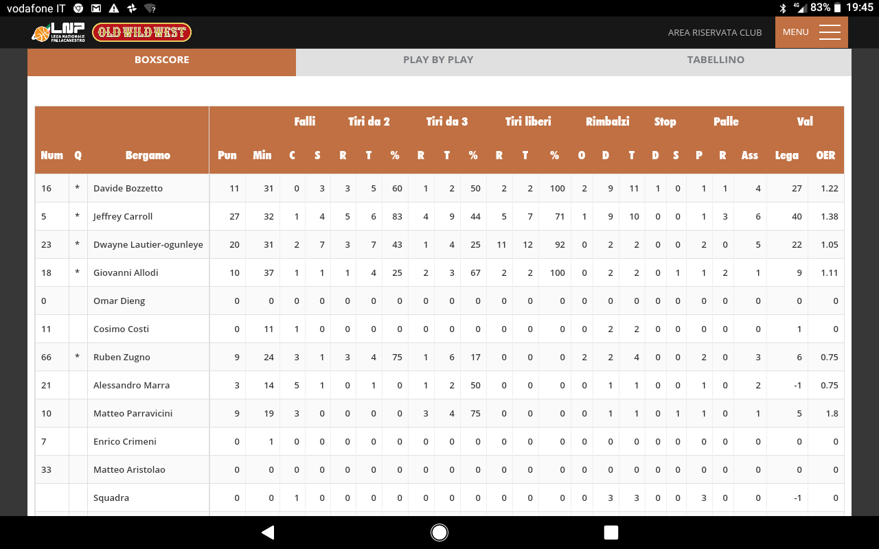 Il guaio della Bertram al rientro dal tunnel sono i falli a quota 3 di Grazulis e Cepic. L’ex Latina (dall’altra parte Pullazi, a bordocampo, lascia a Casella l’onere dell’ex) fa subito il più 25. Tre attacchi sbagliati e Martini punisce da fuori al 3′, ma il londinese risponde per le rime pareggiando a 17 l’altro forestiero di casa, pronto a esplodere per il clamoroso e impensabile 63-35 al quarto giro di lancetta. Il 65-37 inchiodato da Carroll sul lancio stile baseball del rinnegato speciale è l’incipit del tripudio anticipato, anche se il cronometro ancora lunghetto richiede attenzione. Tavernelli la riporta a 25 alle soglie dell’ultima passerella approfittando di ben tre azioni locali da 24 secondi scaduti. Niente da fare, si schioda anche Parravicini (72-44, 1’20”). L’Usa altrui prova a rifarsi sotto dal divano (72-49) a 7’42” dal gong. Nemmeno un tecnico a Calvani a una sestina dalla fine fa riavvicinare gli ospiti più di tanto, perché Zugno ingaggia un bel duello con Grazulis, l’unico o quasi a salvarsi dei suoi. Forse con Martini, vedi schiaccione del 58-76 a un poker dal dunque, rintuzzato dal secondo missile terra-aria della serata di Allodi. Parravicini affossa ulteriormente il nemico, 89-63 a un minutino, e c’è pure il tempo per l’esordio del 2000 Matteo Aristolao.