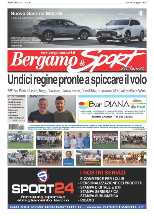 Bergamo & Sport torna in edicola (o sull’edicola digitale cliccando qui) con un numero ricchissimo. Le ultime sul mercato dell’Atalanta, la storia delle plusvalenze record provenienti dal settore giovanile nerazzurro. Si alza il sipario su undici squadroni del nostro calcio, pronti a dare battaglia nella prossima stagione: sipario alzato su Torre de’ Roveri, San Paolo d’Argon, Monvico, Mozzo, Gandinese, Revolutional Carvico, Farese, Accademia Gera d’Adda, Accademia Calcio, Nuova Valcavallina e Sabbio. Tanto, tantissimo mercato con tutti gli ultimi colpi dalla Serie D alla Seconda Categoria. Una pagina dedicata agli allenatori, con tutti i mister delle bergamasche fino alla Seconda. Non mancano i tornei: siamo stati ad Almè, Torre Boldone, Cenate, Villongo col Bena e celebriamo la fine dello spettacolare Notturno di Calusco. Poi tanto ciclismo, con le gare di Bagnatica, Nembro ed Almenno, oltre all’impresa targata MTB Ghisalba: Orisio è sul tetto d’Italia!