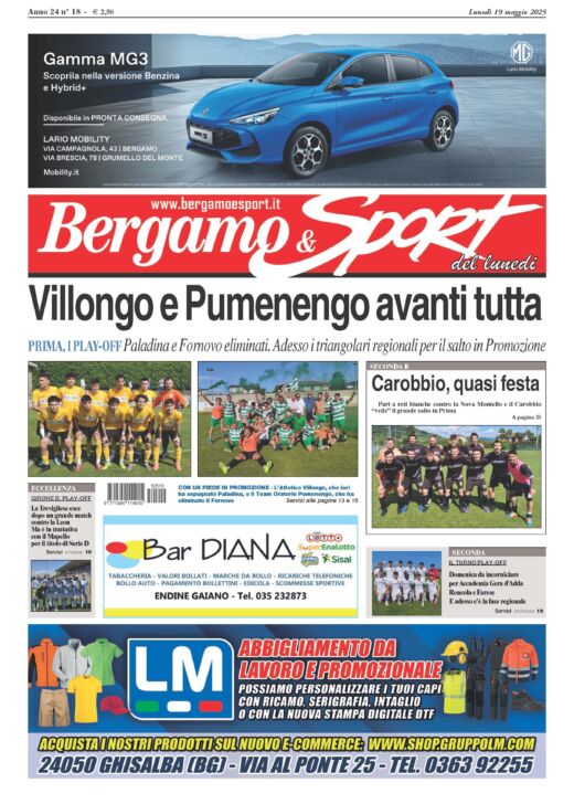 domenica 18 Maggio 2025Bg & Sport in edicola: in evidenza Atletico Villongo, Pumenengo, Carobbio, Accademia Gera d’Adda, Roncola e Farese