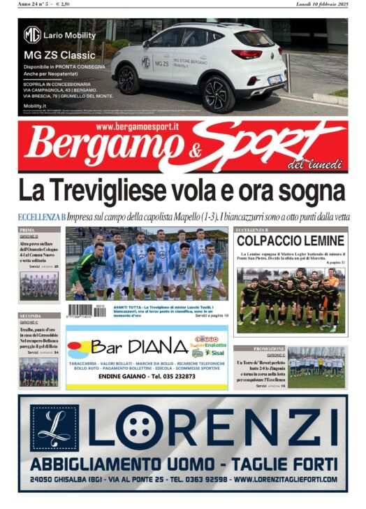 Sipario alzato sul numero odierno di Bergamo & Sport, il settimanale dei calciatori della nostra provincia e che potete acquistare o dal vostro giornalaio di fiducia o tramite la nostra edicola digitale cliccando dalle sei di mattina su www.bergamoesport.it/abbonamenti. In evidenza la Trevigliese (Eccellenza B) che si regala la giornata perfetta in casa della capolista Mapello e conquista il terzo posto in classifica. Sempre nello stesso girone benissimo anche la Lemine che vince e convince a Ponte San Pietro. Da applausi l’ennesima prova da urlo dell’Oratorio Cologno (Prima D), poker al Comun Nuovo e prima domenica al comando in solitaria. Chiudiamo la consueta breve carrellata delle imprese del fine settimana segnalandovi quelle del Torre de’ Roveri (Promozione C), che ha affondato la corazzata Zingonia Verdellino, e del Trealbe (Seconda C), che ha conquistato un punto d’oro a Grassobbio. Tantissime, come al solito, le partite seguite dai nostri giornalisti sui campi della Bergamasca, molti gli approfondimenti, da leggere gli articoli sulla nostra magica Dea, e alcune novità editoriali che scoprirete. Non ci resta che darvi il solito consiglio: non importa dove, non importa come e non importa quando, ma comperate Bergamo & Sport.