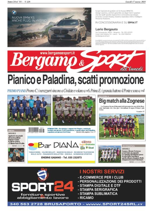 lunedì 17 Marzo 2025Bg & Sport in edicola: Pianico, Paladina, Zognese, Scanzo, Rovato Vertovese e bomber Gamba in evidenza