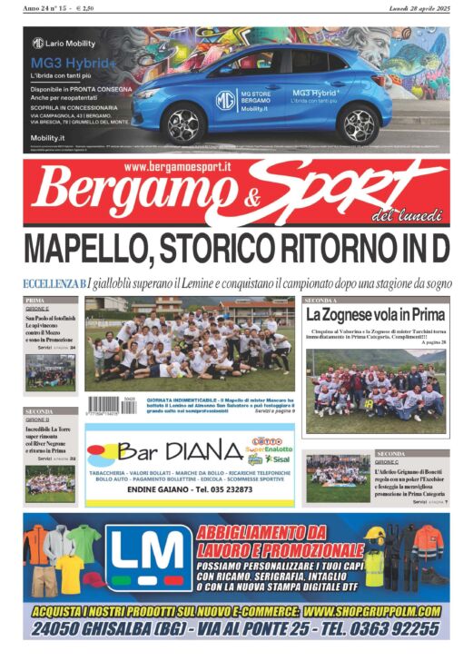 domenica 27 Aprile 2025Bg & Sport in edicola: tutto sulle promozioni di Mapello, San Paolo, Zognese, Atletico Grignano e La Torre
