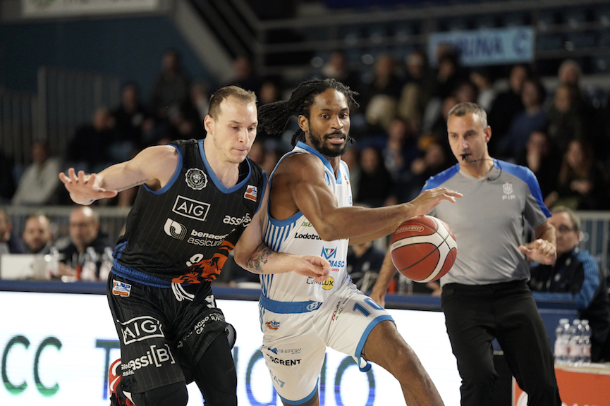 Prima frazione. Moretti trova subito un canestro da sotto. Dal fondo Vitali serve con precisione Guariglia. Il 7 trevigliese trova poi la prima tripla di serata. Romeo viene fermato da Harris ma non sa approfittarne dalla carità. Il canestro e fallo di Guariglia (libero trasformato) è un primo tentativo di fuga ma ci pensa Romeo a spegnere subito l’inerzia trevigliese con una tripla centrale. Altro passaggio dal fondo di Vitali che stavolta pesca Pacher per un canestro e fallo (libero trasformato). Mayfield si vede respinto il tiro dal ferro e, sul rimbalzo difensivo, Cerella lancia Guariglia con la partecipazione di Vitali per il +8 che diventa +11 con la tripla di Pacher. Romeo realizza dalla media mentre per Alipiev arriva il terzo fallo personale. Time out chiamato da Sacco. Con Latina in bonus va in lunetta Pacher (1 su 2). Anche Treviglio va in bonus a -3’40” ma Moretti ne approfitta solo parzialmente (1 su 2). La tripla di Cerella rimette tutto a posto per i colori blu mentre i pontini cercano, senza successo, di sfruttare i tiri dalla carità con Viglianisi (0 su 2). Va meglio a Giuri con un 2 su 2 che fa registrare il +14. Lo segue Mayfield e sono i primi due punti per l’americano di Latina. Gli ospiti mettono pressione alla difesa di casa e lucrano un altro fallo (Mayfield fa 2 su 2). Moretti ne trova altri due e Latina, senza clamore, rosicchia punti. La tripla in corsa di Mayfield da ulteriore fiducia agli uomini di Sacco che ora portano l’inerzia a loro favore sempre grazie a Mayfield, vincente, in penetrazione. La sirena del quarto interrompe il recupero neroazzurro con Treviglio che chiude avanti di soli tre punti.