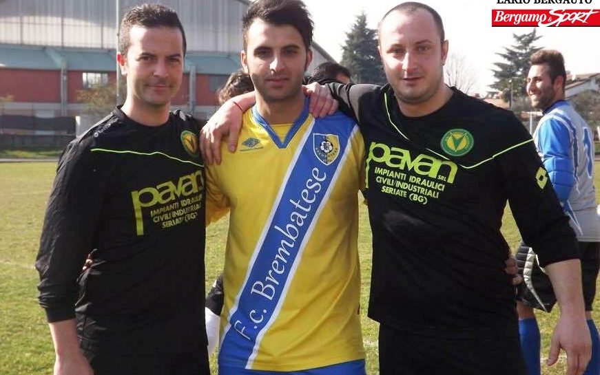 Nella foto Brischetto (al centro) ai tempi della Brembatese, a sinistra Luca Moriggi e a destra Vincenzo Caiazza durante un Brembatese-Oriens