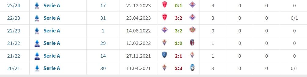 Il bilancio atalantino con Sacchi è comunque favorevole, comprendendo anche un precedente diretto coi viola. 5 bottini pieni su 8 con 3 sconfitte. Andando a ritroso, 6 gennaio ’21, tris casalingo al Parma (Muriel, Zapata, Gosens); 11 aprile dello stesso anno, 3-2 a Firenze (doppiette di Zapata e Vlahovic, Ilicic su rigore); quindi, il 2-1 in casa dell’Hellas Verona il 12 dicembre successivo (Simeone, Miranchuk e Koopmeiners). Per i toscani, invece, 3 bottini pieni e altrettante battute d’arresto: il 22 dicembre scorso l’ultima gara arbitrata dalla giacchetta colorata marchigiana, l’1-0 a Monza firmato Lucas Beltran (sotto, il riepilogo da Transfermarkt).
