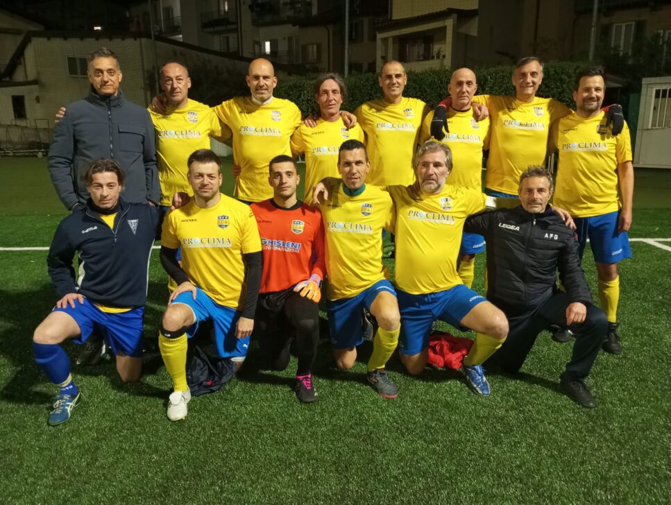 Bergamo – Al campo Excelsior, il 5-3 che non t’aspetti a favore di chi all’intervallo pareva boccheggiare sotto il pelo dell’acqua. Mirabilie e sorprese di una seconda fase che sembra voler far tabula rasa della regular season. Testa e piede, l’uno sull’assist dalla bandierina destra dell’altro che poi apre il piattone sul filtrante di Fattorini. Pata e Manighetti parevano averla messa sul versante dell’Azzanese, questa benedetta seconda giornata della Conference League Over 40 (qui i risultati aggiornati di Bergamo Tornei), senza però fare i conti con le capacità balistiche e le doti di reazione della Destinazione Sole. Che in tre giri di lancette nella ripresa, stile Verona nel Monday Night dell’Atalanta due sere prima, la raddrizza con la botta a mezz’altezza di Pezzotta davanti alla lunetta e la riacciuffa con Insinna, sterzato sul mancino rasoterra chiamatogli dal doppio assistman Capitanio sul filo dell’offside. Il botta e risposta tra gli altri due doppiettisti di giornata, dal dischetto per tackle del portiere Alborghetti sulla new entry Dentella, e su azione slalomeggiando per il sinistro in caduta dietro input di Tibiletti, viene risolto nel finale col paio di acuti da bottino pieno di Morstabilini nel duetto con Dentella e ancora dal centrocampista che piega le mani al portiere avversario dalla lunghissima.
