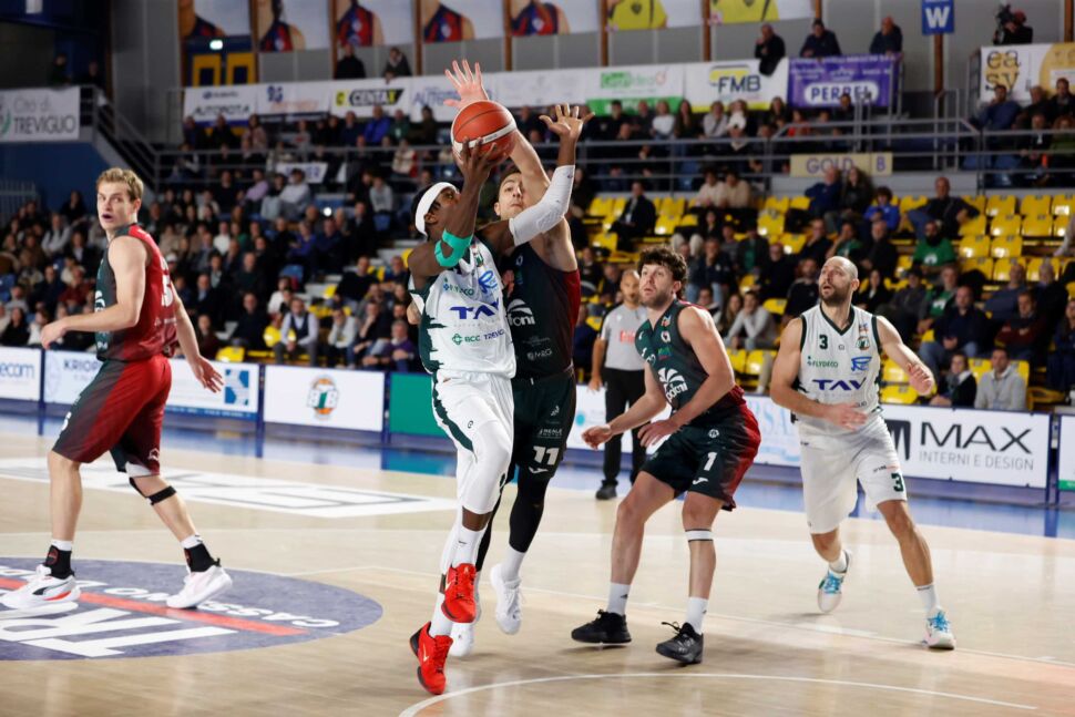 Treviglio. Torna al Palafacchetti Omegna, un avversario storico per i trevigliesi, forse la miglior formazione vista quest’anno a Treviglio. La compagine di Villa ha potuto dire di aver fatto sua la contesa solo nella quarta frazione, dopo 30’ di continui capovolgimenti di fronte e con ben quattro uomini rossoverdi in doppia cifra. Questa sera tra l’altro la Tav ha dovuto fare quasi subito a meno del totem Marcius, uscito anzitempo per infortunio che speriamo non lo tenga troppo lontano dal parquet. E’ stata anche la serata della “linea verde” con Zanetti (doppia doppia e 33 di valutazione), Abega e Cagliani, a conferma del buon lavoro che sta svolgendo coach Villa. Continua dunque il percorso vincente di Treviglio che ora è chiamata ad un doppio confronto esterno.