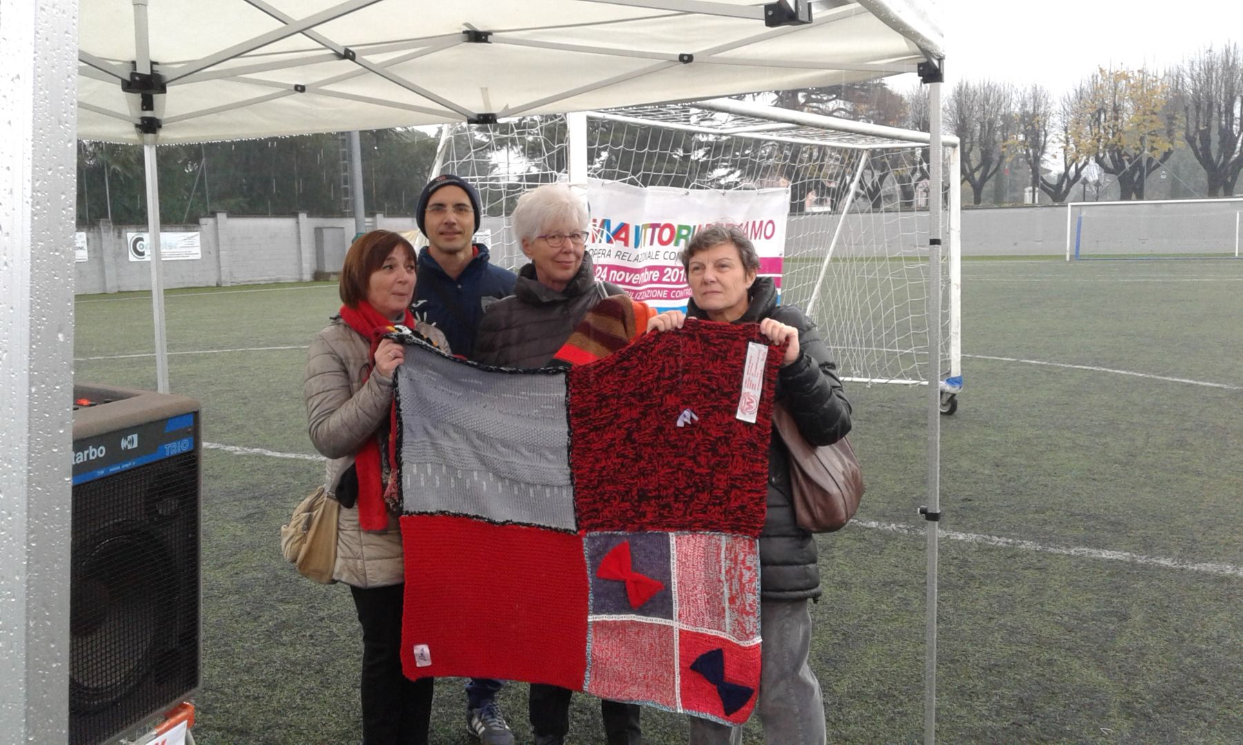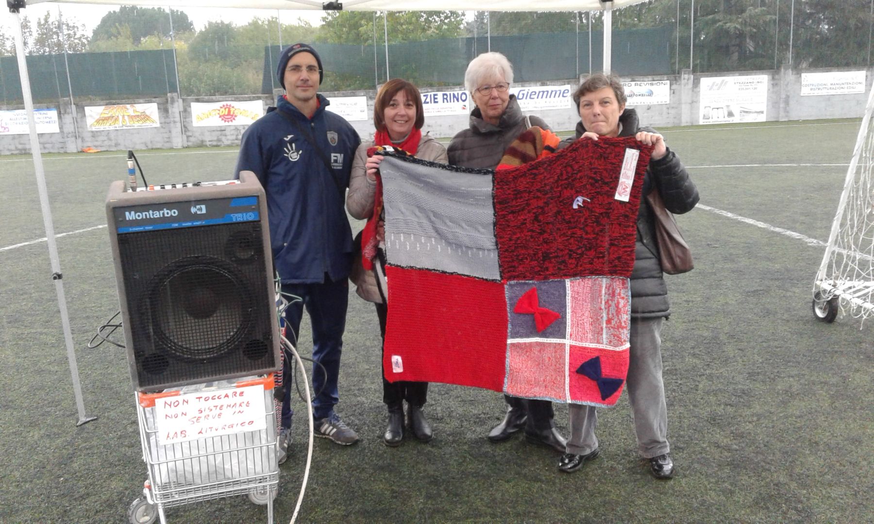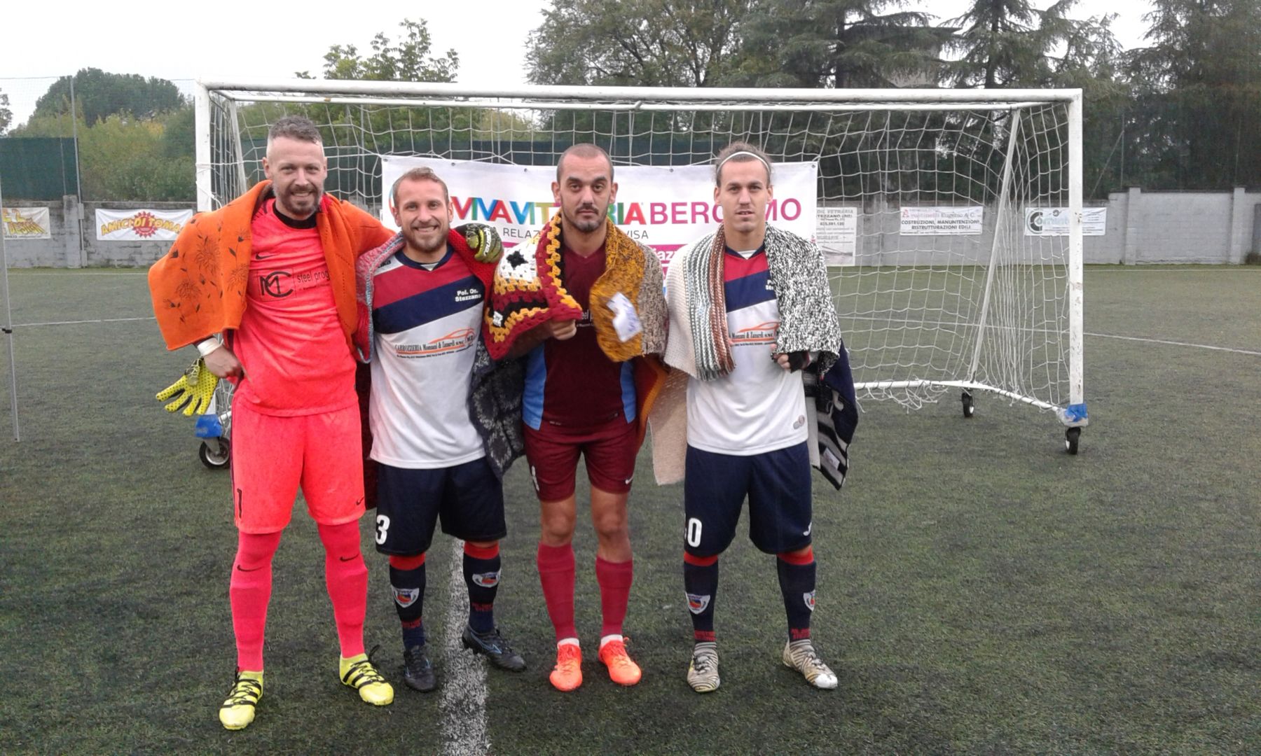 Oratorio Stezzano e Cividino Quintano, le contendenti dell’undicesima giornata del girone C di Seconda Categoria, si sono prestati volentieri a un piccolo evento da testimonial e sostenitori, al pari del Comune di Stezzano rappresentato dal sindaco e dirigente del club ospitante Simone Tangorra. Capitani e vicecapitani, Luca Salvioni e Alessandro Colleoni da una parte, Andrea Fenaroli e Nicolas Faustini dall’altra, si sono fatti immortalare con le coperte, che saranno esposte tra le altre nella due giorni organizzata dall’associazione Viva Vittoria. Rappresentata sul campo, letteralmente, da Nadia Zanotti, Miriam Signorelli del Circolo Culturale Minardi e Oliana Maccarini, presidente di Aiuto Donna – Uscire dalla Violenza di Bergamo.