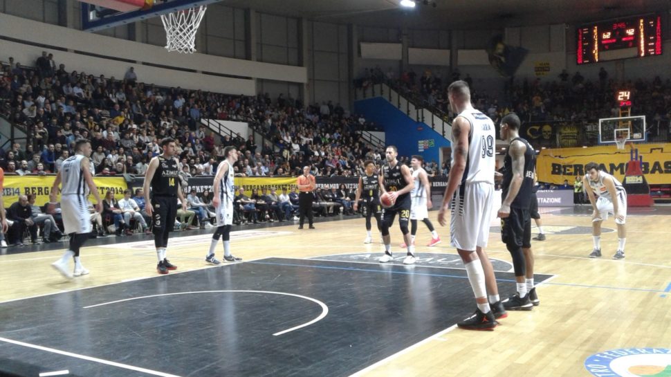 Prima della pausa, spazio per l’alley-oop Tiberti-Roberts, che però innesca la reazione locale: la miniserie da 5 di TRod, il gioco da 3 di Benvenuti e il borseggio del meno 10 di BT che anticipa la seconda sospensione Remer (32-42) e l’avvitamento di Zucca. Classico fuoco di paglia. Caroti (1) e Palumbo tengono sopra i Vertemati-boys, ma è chiaro che fin qui conta il 9 a 2 nel tiro pesante e difatti l’americano in biancoblù azzecca il poker al rientro sul legno toccando quota 50 (più 14) dopo nemmeno un minuto e mezzo. La terza penalità di Borra non frena né lui né i compagni, e se anche Pecchia ritrova la mira perduta è notte fonda (56-38, 2’31”). Roberts affossa definitivamente ogni velleità di rimonta scavando 19 solchi. La BB14 fa cilecca e a 5′ dall’ultima passerella cronometrica il centrone fa 62-40. Punto di non ritorno? Sissignori. Pur caricandosi di falli a favore degli esterni nemici, alla fine la palla scotta sempre nelle mani dei soliti noti e la coppia Caroti-Pecchia la sigilla a una decade dal gong. D’Almeida, Roberts e pure Taflaj umiliano la BB14 con la potenza di un tuono in area e fuori, toccando i 29 di vantaggio. L’orgoglio di mori e rincalzi bergamaschi si riporta sotto (60-79 di Taylor in rovesciata, 6′), Sergio e ancora il play di West Hollywood salvano parzialmente l’onore concedendosi le inutili cannonate finali. Quattro in doppia cifra contro due: solo questo dice tutto di una straprovinciale psicologicamente chiusa, forse, ancor prima del salto a due.