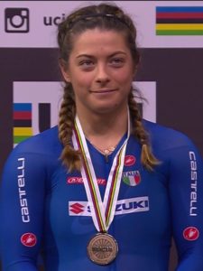 Tutta un’altra storia quella di Elisa Balsamo della quale abbiamo visto per la prima volta il suo lato umano e la sua capacità di saper soffrire. Sì, perché dopo anni in cui “l’extraterrestre piemontese” ha inanellato una serie di prestazioni super in pista nelle varie prove di Coppa del Mondo, stavolta Elisa è stata colpita da una brutta influenza pochi giorni prima delle competizioni. Per lei la giornata di venerdì è stata da dimenticare: se nel mattino c’era stata la gioia di aver fatto registrare il record italiano nel quartetto insieme ad Alzini, Paternoster e Valsecchi, nel pomeriggio Elisa si era addirittura staccata alle compagne di squadra compromettendone la prestazione. Ebbene, nonostante un venerdì di difficile gestione fisica ed emotiva, Elisa ha rialzato la testa da vera campionessa, disputando una madison da incorniciare in coppia con Letizia Paternoster. Memorabili le sequenze di questa gara con una Letizia decisamente più in palla e in forma strabiliante rispetto ad Elisa che ha stretto i denti e ha lottato portando a casa 5 punti decisivi a metà gara. Nel finale le due azzurre hanno addirittura sfiorato l’argento. Ancora una volta una sontuosa Letizia Paternoster ha anticipato la volata ai meno 3 giri, quindi ha dato il cambio ad Elisa Balsamo al penultimo giro che ha attaccato in prima posizione con a ruota l’atleta francese che è riuscita a bruciarla in finish line soltanto per un centimetro. Poco male. Per le due azzurre è arrivato un bronzo che vale oro e che fa letteralmente sognare in vista delle prossime Olimpiadi di Tokyo.