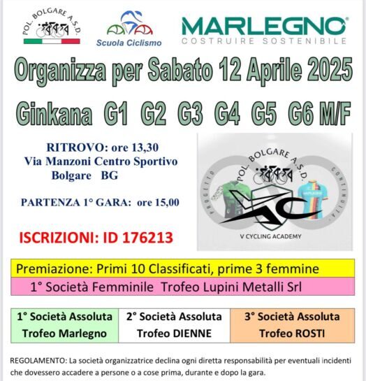 Sabato 12 aprile la Polisportiva Bolgare scuola Ciclismo organizza la Gimkana rivolta a tutti i Giovanissimi.