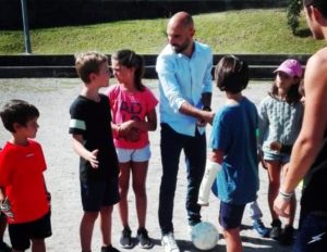 Vorrei che i campioni del Pontisola, i Recino, i Pinto, i Ruggeri, i Signorelli, dicessero la loro, che si mettessero a raccontare agli altri calciatori com’è avere un allenatore tanto in gamba, colto, sensibile, preparato, raro in un ambiente come il nostro dove la frase più usata in tribuna e nello spogliatoio è “la nostra forza è l’ignoranza” e tanti mister stanno in panchina incazzati neri sia che si stia vincendo o che si stia perdendo. Giacomo è il contrario, è laureato, legge un sacco di libri, ha una grande attenzione per gli altri, si spende totalmente per i bambini di questa mattina o per i down che gli riempiono la vita al di fuori del campo avendo scelto per compagna una donna che lavora con la disabilità. Lo immagino con i suoi calciatori, impegnato nella cura dei consigli.