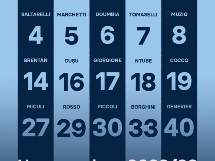 Ecco la lista completa in ordine progressivo: Manca sempre meno al via ufficiale del campionato di Serie C, che anche quest’anno vedrà i blucelesti di mister Biava impegnati nel Girone A (raggruppamento del Nord Italia). A pochi giorni dal fischio d’inizio, i giocatori della Prima Squadra hanno scelto i numeri di maglia che indosseranno nel corso della Stagione 2022/23.