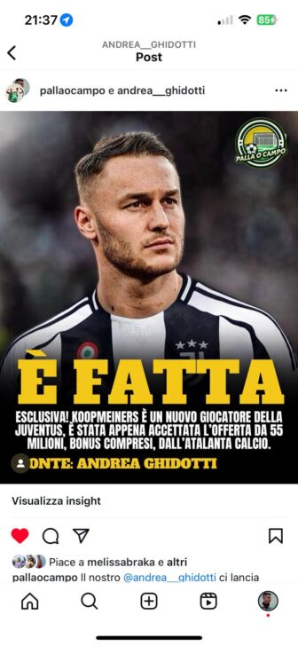 Closing il 28 agosto anche per Teun Koopmeiners alla Juventus tra visite mediche e firma. Andrea Ghidotti, tra l’altro anche nostro collaboratore, a cui facciamo i complimenti per la previsione pressoché esatta anche nelle cifre (da 55 milioni a 52+6 di bonus+2 di contributo di solidarietà), ne era certo già il 29 luglio scorso. I Percassi hanno tenuto il punto finché hanno potuto, ma avevano ragione lui e gli altri esperti di calciomercato.