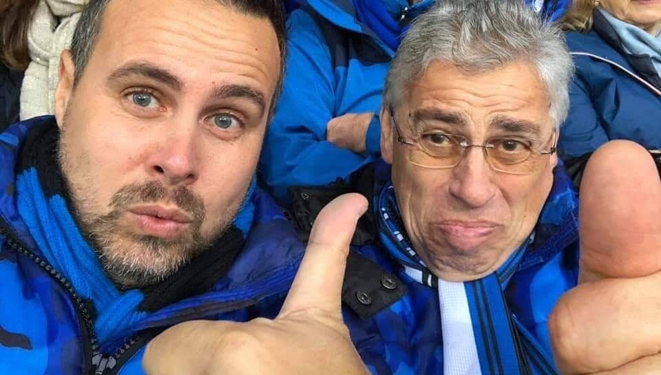 Nella foto mi vedete col mio povero papà, immortalati in un momento di pura commozione da stadio.
