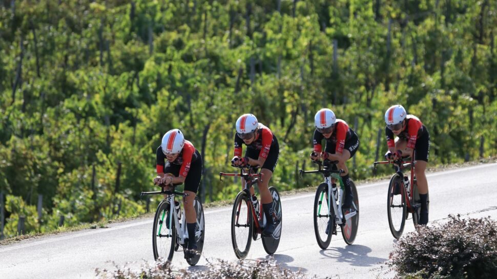 Esaltante performance, culminata con la conquista di una preziosa medaglia d’argento, del team Isolmant – Premac – Vittoria nella prova unica del Campionato Italiano Cronosquadre organizzata nel primo pomeriggio di sabato 12 ottobre dall’A.S.D. La Termopiave Valcavasia Junior Team nel cuore di Cavaso del Tomba, in provincia di Treviso. La formazione dell’esperto team manager Giovanni Fidanza si è resa autrice di una prova maiuscola, disputata sulla distanza di 34 chilometri spalmati lungo le strade di un doppio circuito davvero impegnativo, tecnico, ricco di saliscendi, strappi e di mille insidie.