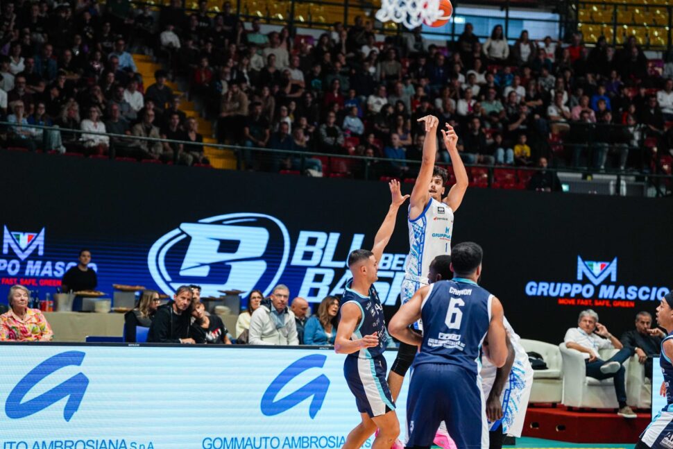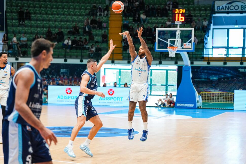 Una partita senza grandi scossoni, sempre controllata dalla squadra bergamasca, che ha chiuso il primo quarto sopra 25-24, ha vinto il secondo periodo 20-16 andando all’intervallo sul 49-45, ha chiuso avanti il terzo periodo col minimo scarto sul 67-66 e ha poi allungato nell’ultimo superando quota 90. Nella Gruppo Mascio, oltre ai 26 del tiratore scelto, ottima l’ala forte Lombardi a 16, quindi il centro Hogue a 14, l’ala piccola Loro a 13 e il regista e capitano Bossi a 9.