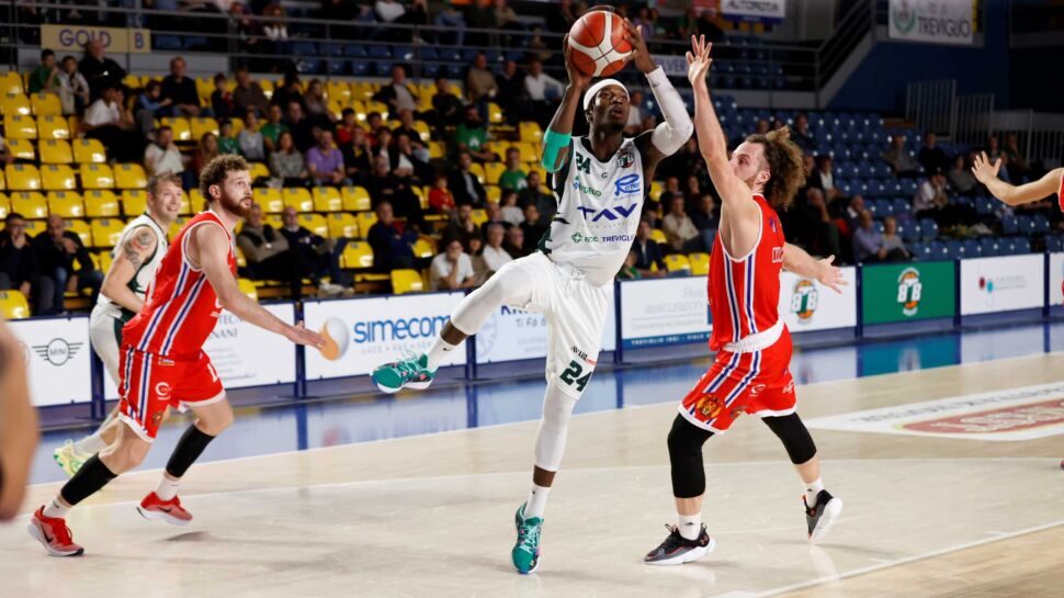 Treviglio. La Tav trova la quinta vittoria del campionato superando non senza difficoltà, a dispetto del risultato finale, una coriacea Civitus Vicenza. Dopo i primi 20’ si sostanziale equilibrio, se non nel punteggio almeno nel gioco, la ripresa e soprattutto l’ultima frazione scavano un solco tra le due squadre con Treviglio che trova una miglior precisione al tiro e mette nel motore un Abega da 25 punti insieme ad un finalmente convincente Manenti. Stasera un po’ in ombra Marcius capace comunque di raccogliere 15 di valutazione. Per gli ospiti sugli scudi il folletto Cucchiaro (19 punti di cui 9 dalla carità), troppo poco tuttavia per creare problemi alla difesa trevigliese.
