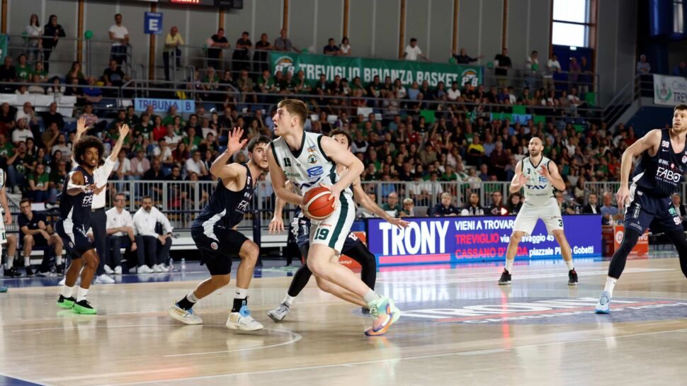 Quarta frazione. Montecatini spende due falli in meno di un minuto. Zanetti emerge nella tonnara toscana e trova due punti di autentica rabbia agonistica. La tripla di Restelli certifica l’inerzia biancoverde (5-0) che Barsotti cerca di interrompere con un time out. Canestro di qualità di Arrigoni. Zanetti non si ferma e trova altri due punti. Cagliani con l’area affollata conclude dai 6 e 75 per il massimo vantaggio del match (+11) a – 5’56”. Treviglio ora è un fiume in piena e per i rossoblu non resta che fermare il gioco con un fallo. La tripla di Chiera ed il libero di Arrigoni riportano sotto gli ospiti. Altro canestro di Zanetti. I liberi di Chiera portano Montecatini a -7. Zanetti fa 1 su 2 dalla carità mandando nel contempo la Fabo in bonus. Le triple di Benites e Chiera riaprono a -3’09” una partita dall’esito ora per nulla scontato. Time out chiesto da Treviglio. Arrigoni sfiora la parità dalla lunetta poi arriva il fallo liberatorio che manda ai liberi Alibegovic (2 su 2). Il pareggio è nell’aria e lo certifica Chiera con la tripla centrale. Canestro in acrobazia di Alibegovic. Orma è una battaglia fisica ed ora in lunetta va nuovamente Arrigoni (2 su 2). Pareggio a 100” dalla sirena. Abega fa 2 su 2. Zanetti esce per cinque falli con Chiera che fa vedere bene l’infrazione subita (2 su 2) e nuova parità. Lo stillicidio di falli prosegue anche nell’ultimo minuto. In lunetta Alibegovic (2 su 2). Dopo il time out prende palla Vecchiola che lascia scorrere il cronometro e piazza il canestro della tranquillità a -14”. Chiera, il migliore dei suoi, palla in mano compie infrazione di passi restituendo la sfera a Treviglio a -9”. Nuovo time out di una partita interminabile. Montecatini spende fallo e manda in lunetta Reati ( su 2) spegnendo le residue speranze dei toscani.
