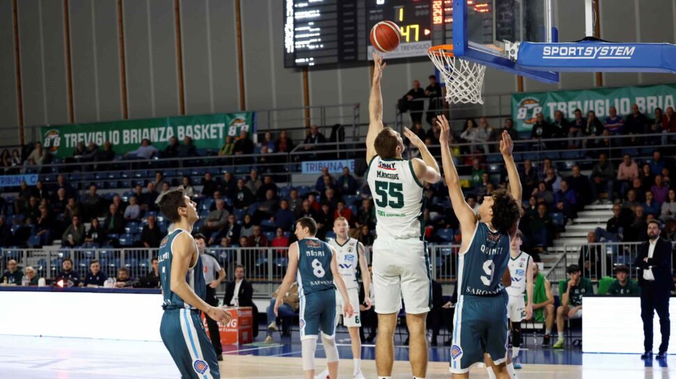 Dopo il cambio di campo, Marciuš (8/9) fa sentire tutto il suo peso e ribatte alle iniziative di Pellegrini e Quinti. Alibegović spinge sino al 65-41 (24′), ma Saronno tiene alto l’onore e vince il parziale del quarto, segnando 24 punti alla miglior difesa del girone. Alla terza sirena, la TAV continua a condurre in sicurezza: 76-57.