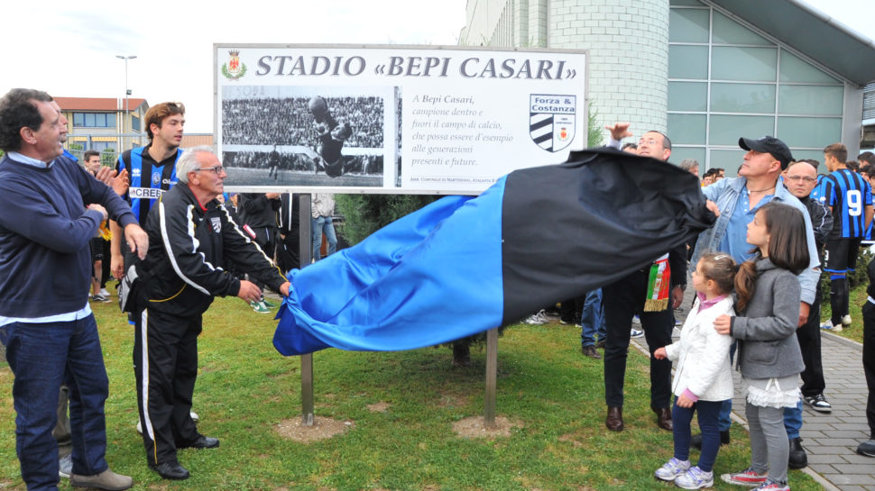 – Grande folla per l’intitolazione dello stadio di Martinengo a Bepi Casari, indimenticato campione atalantino e azzurro. Presenti anche il sindaco di Martinengo Paolo Nozza, il parroco Paolo Rossi, il presidente della Forza & Costanza Battista Bassani, il dirigente dell’Atalanta Roberto Spagnolo e, naturalmente, la famiglia Casari. Nell’occasione si è anche giocato un triangolare tra la formazione locale, il Pontisola e la Primavera dell’Atalanta.