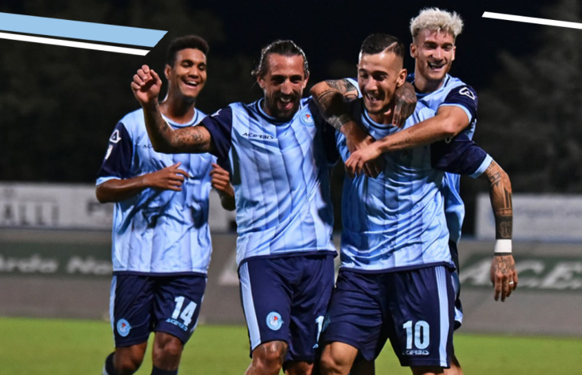 Il braccio di Sala per stoppare la palla dentro di Tomaselli, raggiunto dal cambio di campo di Gusu in combutta con la coppia di spondisti Cori-Giorgione, è il primo focherello acceso al poker cronometrico, ma ancora lontanuccio dal dunque. Un po’ più vicino il centravanti, disturbato dall’onnipresente pendolino destro altrui una sporca decina più tardi sul traversone sempre del rumeno, tanto che lo stacco in caduta finisce dritto per dritto. La scollinata oltre il quarto d’ora è fatale quanto il fine schiena del difensore scuola Atalanta per anticipare De Sena sull’ammollo di Ghezzi, a ruota di ben due rimesse laterali con Capogna ad appoggiare dall’intersezione dell’area col fondo. Il viterbese là davanti stacca una volta di più, benché centralmente, all’alba del ventiduesimo, senza tramutare in oro la prima conclusione seriana nello specchio, un peccato vista la precisione della scodellata calibratissima di Nichetti da mancina.