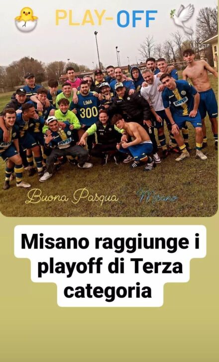Il Misano raggiunge matematicamente i playoff nel girone A cremasco di Terza categoria dove approdano le squadre dal 2° al 7° posto senza forbice di punti. Il capitano Francesco Limatola intanto firma le 300 presenze in gialloblu. Complimenti dalla redazione di Bergamo & Sport!