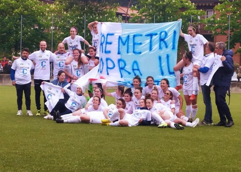 Manca solo il pro forma in chiusura di campionato, a Brivio, domenica 7 maggio, ospiti dell’Oratorio 2B. Il Monterosso di Macs Vezzali ha già scritto, nell’ultimo festivo di aprile, il capitolo di una nuova storia, portando la città di Bergamo nella Serie C femminile. Il 2-1 al Sedriano davanti a 300 spettatori assiepati al campo “Acquaderni” consente di lasciare la Doverese a meno 5 a una sola giornata dal gong e così la promozione sfumata di un amen la scorsa primavera è una gioiosa realtà. Il 14, a Meda, la rivincita nella finalissima di Coppa Italia di categoria tra le due contendenti del penultimo turno del campionato lombardo di Eccellenza.