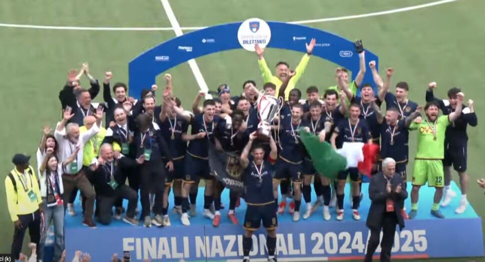 Triplete Rovato Vertovese! Il capolavoro della squadra di Marco Bolis è completato dal successo nella Finale Nazionale di Coppa Italia categoria Eccellenza, andata in scena al “Gaetano Bonolis” di Teramo: 3-1 all’ultra-quotato Barletta e l’en-plein è servito. Vittoria in rimonta, ottenuta sulle ali di una superba ripresa. Dopo l’iniziale svantaggio del primo tempo, ad opera di Bernaola, il pari di Adenyo riporta i conti in parità, prima della micidiale doppietta di Dennis Cartella, autentico man of the match a suon di folate offensive. Encomiabile il contributo di tutto il collettivo a disposizione di mister Marco Bolis, che si congeda dalla panchina franciacortina con un superlativo Triplete in saccoccia: Coppa Regionale prima, campionato poi, infine Coppa Nazionale, nel magico pomeriggio abruzzese. Davvero niente male, per uno dei più apprezzati tecnici della scena lombarda e per una società, come la Rovato Vertovese, che al primo anno di attività ha saputo rapidamente indossare le vesti del cannibale. Su Bergamo & Sport in edicola lunedì 12 maggio il servizio completo.