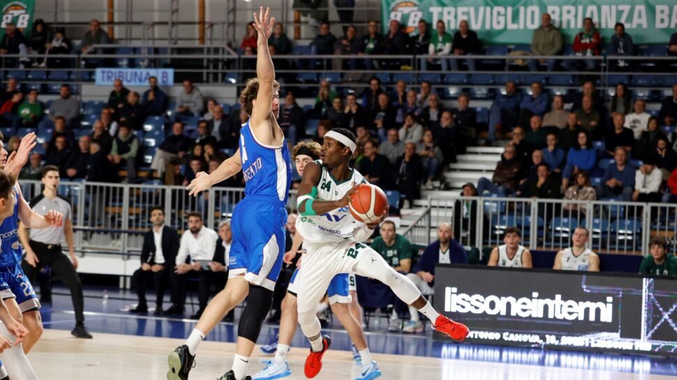 Terza frazione. I primi punti arrivano dalla carità con Miccoli. Risponde immediatamente Marcius. Azione in velocità di Abega alimentata da Alibegovic. La tripla di Abega ed il jump di Marcius disegnano il +13 con immediato time out di Quilici. Grande palla recuperata da Alibegovic cha alimenta un contropiede micidiale per la finalizzazione di Abega. Alibegovic in un ottimo momento trova anche due punti dalla carità (+17). Anche Chiarastella realizza due liberi. Treviglio ora molto convincente con un ottimo giro palla e molta grinta. Con i biancoverdi in bonus si presenta dalla carità Morici (1 su 2). La tripla di Scarponi suggerisce a Villa un time out nonostante il buon vantaggio (+11). Lunetta anche per Marcius (1 su 2). Scarponi sempre efficiente nel pitturato. Contropiede di Abega che serve per Sergio con i primi due punti per il n. 3 trevigliese. Tripla di Abega che poi dispensa un assist per il capitano Reati, fermato fallosamente al tiro (2 su 2). Zanetti sfrutta un errore difensivo ed anche per lui arrivano i primi due punti. Martini trova un buon canestro con la complicità della difesa trevigliese. Sulla sirena preghiera di Piccone che si spegne sul ferro mandando le due squadre all’ultimo riposo con Treviglio avanti 17 punti.