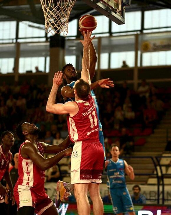 Terza frazione. Rimini prova a reagire ma i primi punti arrivano da Marini che poi trova anche la tripla del +17. I liberi di Anumba non cambiano l’inerzia (1 su 2). Tap-in di Masciadri. Poco importa se Treviglio è già in bonus a -5’. Tassinari trova una tripla da posizione impossibile. Riparte Treviglio con Bruttini, prima su azione e poi dalla carità (1 su 2). Si rivede Johnson dopo sette tentativi a vuoto. Tassinari sfrutta una palla recuperata e costringe Finelli al time out sul +10. Penetrazione vincente di Giuri ed altra tripla di Marini per il +15. Johnson non ammaina la bandiera riminese ma Marini ha deciso di aggiornare le proprie statistiche con un’altra tripla mettendo fine al penultimo quarto.