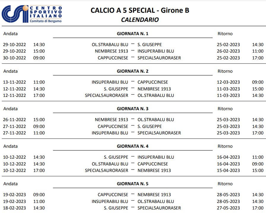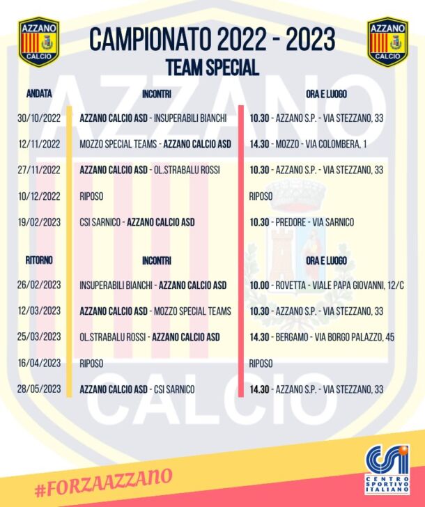 Riecco il futsal indoor più importante che esista. Due gironi, uno da 5 squadre e l’altro da 6. Arrivati, con questo weekend, alla seconda giornata. Ma il campionato Special a 5 sotto l’egida del CSI-Centro Sportivo Italiano, cominciato in autunno, terrà compagnia e sarà da stimolo ai weekend degli sportivi, salvo l’interruzione invernale, fino alla primavera del 2023. Ed è la massima manifestazione dell’incrocio tra sport, impegno sociale e inclusività.