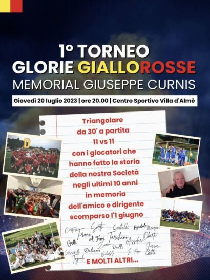 Il Villa Valle onora l’amico e dirigente di Giuseppe Curnis, scomparso all’inizio dello scorso giugno, dedicandogli un triangolare il prossimo giovedì 20 luglio al centro sportivo di Villa d’Almè. Il 1° Torneo Glorie Giallorosse – Memorial Giuseppe Curnis sarà disputato, attraverso gare 11 contro 11 da mezzora l’una, coi giocatori che hanno fatto la storia dell’ultimo decennio del club del presidente Piergiorgio Castelli.